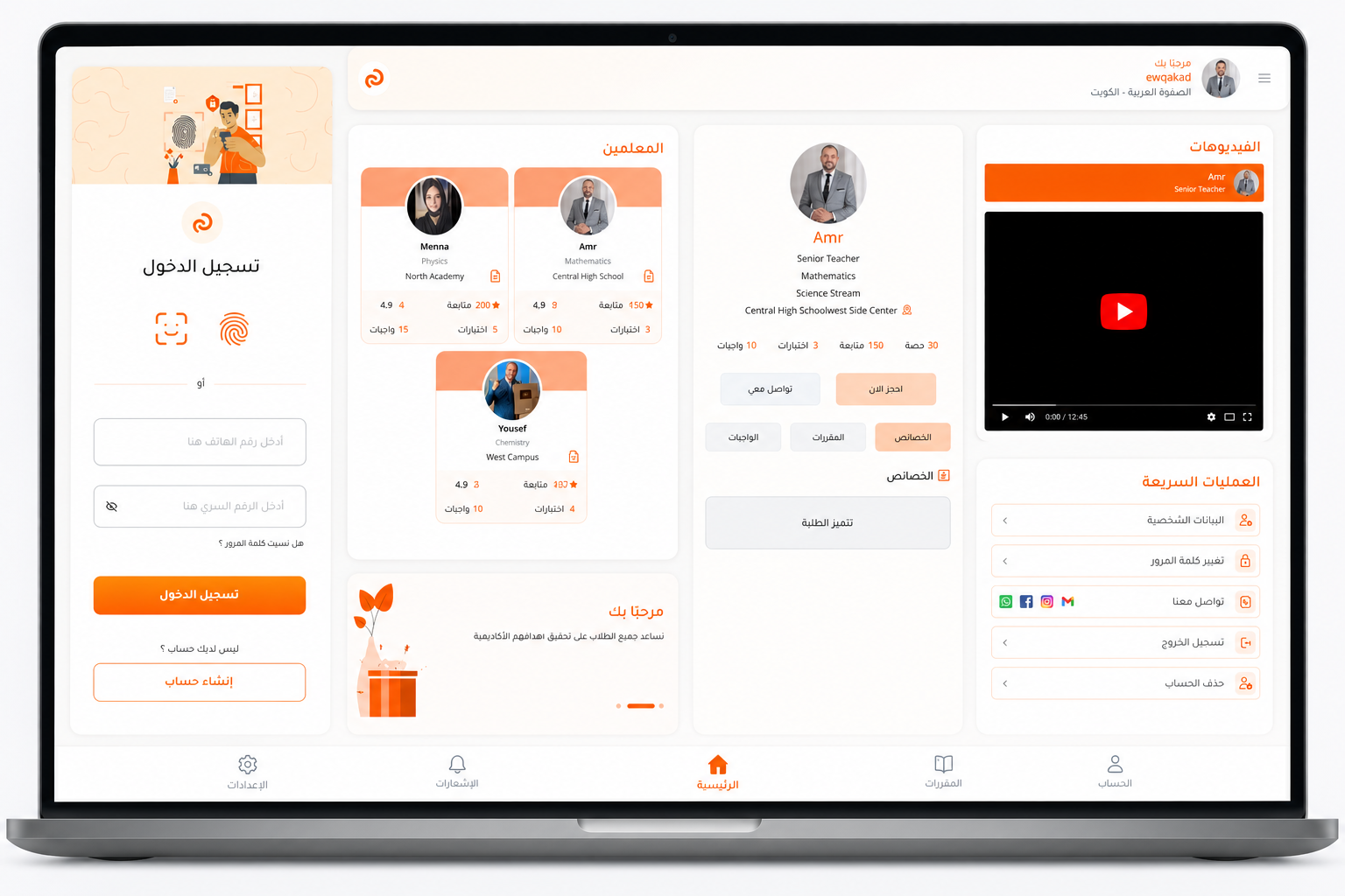 كما يتميز بواجهة بسيطة وسهلة الاستخدام تساعد الطلاب على التركيز وتحقيق أفضل استفادة من المحتوى التعليمي.